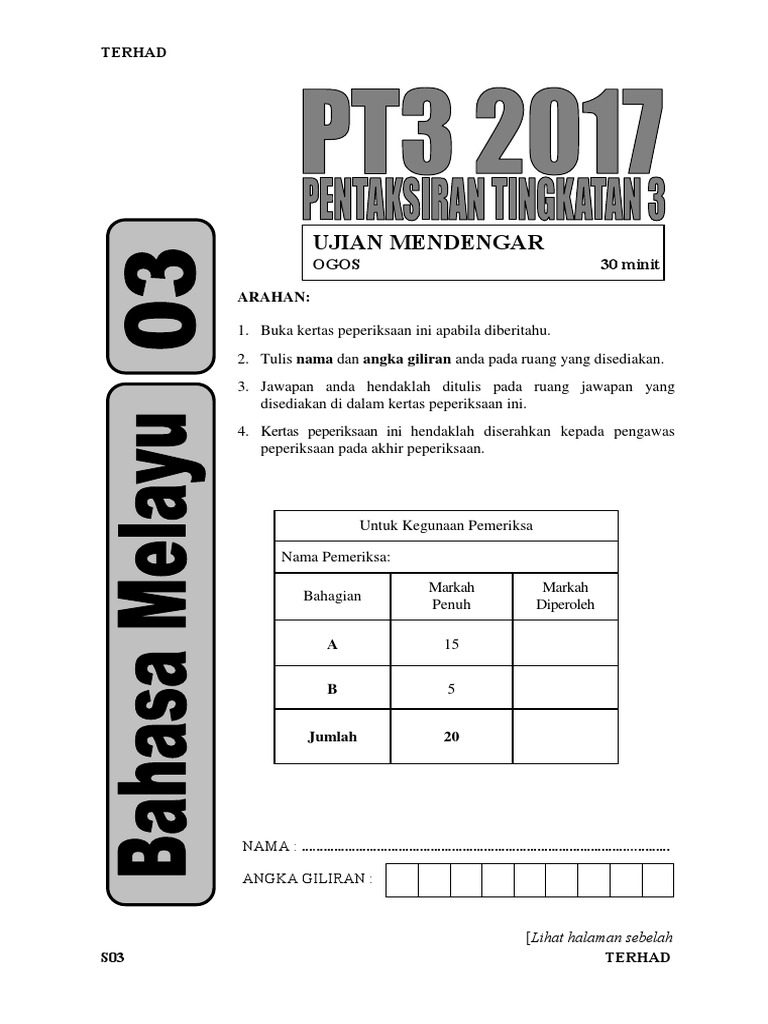 Related posts to contoh soalan pt3 bahasa melayu 2016. Koleksi soalan percubaan pt3 2020 (trial papers). Pendidikan, kesihatan, tutorial, seo, blog, google adsense, soalan, upsr, pt3, spm, universiti, biasiswa, scholarship, ptptn, covid19, bpn, bsh, pkp Antara koleksi kertas soalan yang dikongsikan termasuklah subjek bahasa melayu, bahasa inggeris sila klik pada kertas soalan dan skema jawapan mengikut negeri untuk pt3 2018 dan 2019 seperti yang disediakan di pautan di bawah Soalan pt3 bahasa melayu (latihan 2).